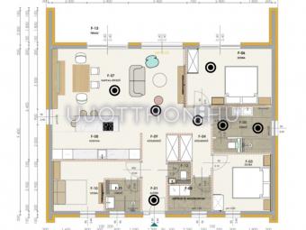 Tágas elrendezés: Nappali, 3 hálószoba, 2 fürdőszoba, gardrób, mosókonyha