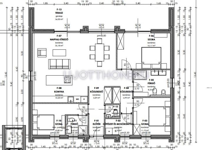 Tágas elrendezés: Nappali, 3 hálószoba, 2 fürdőszoba, gardrób, mosókonyha