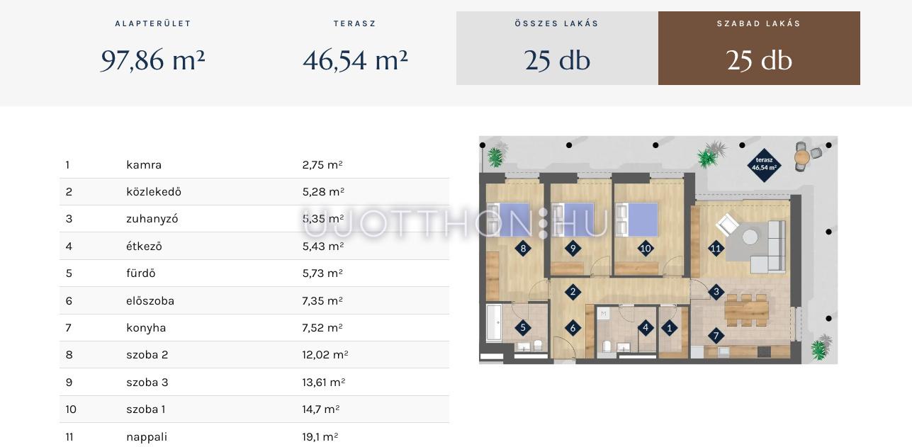 25 db 98-105 m2 lakás 46,5 m2 terasszal