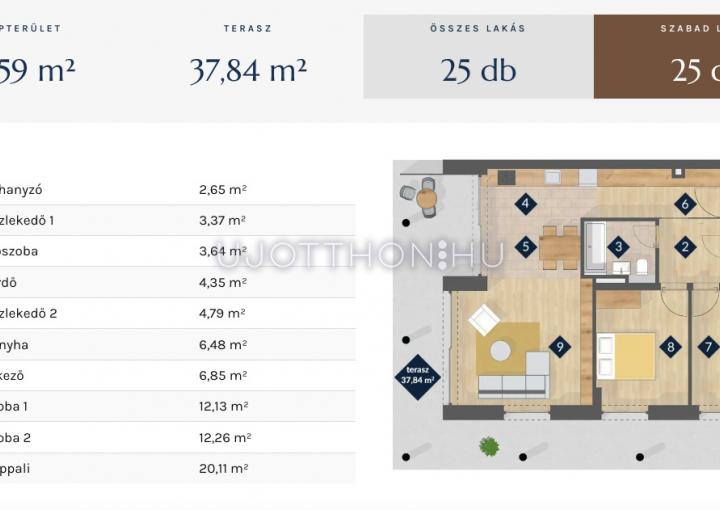 25 db 98-105 m2 lakás 46,5 m2 terasszal