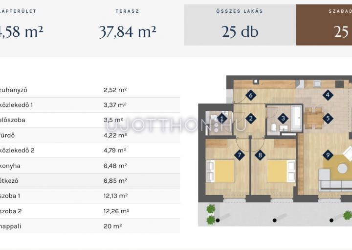 25 db 98-105 m2 lakás 46,5 m2 terasszal