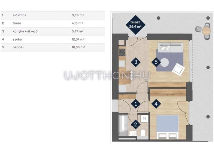 25 db 98-105 m2 lakás 46,5 m2 terasszal