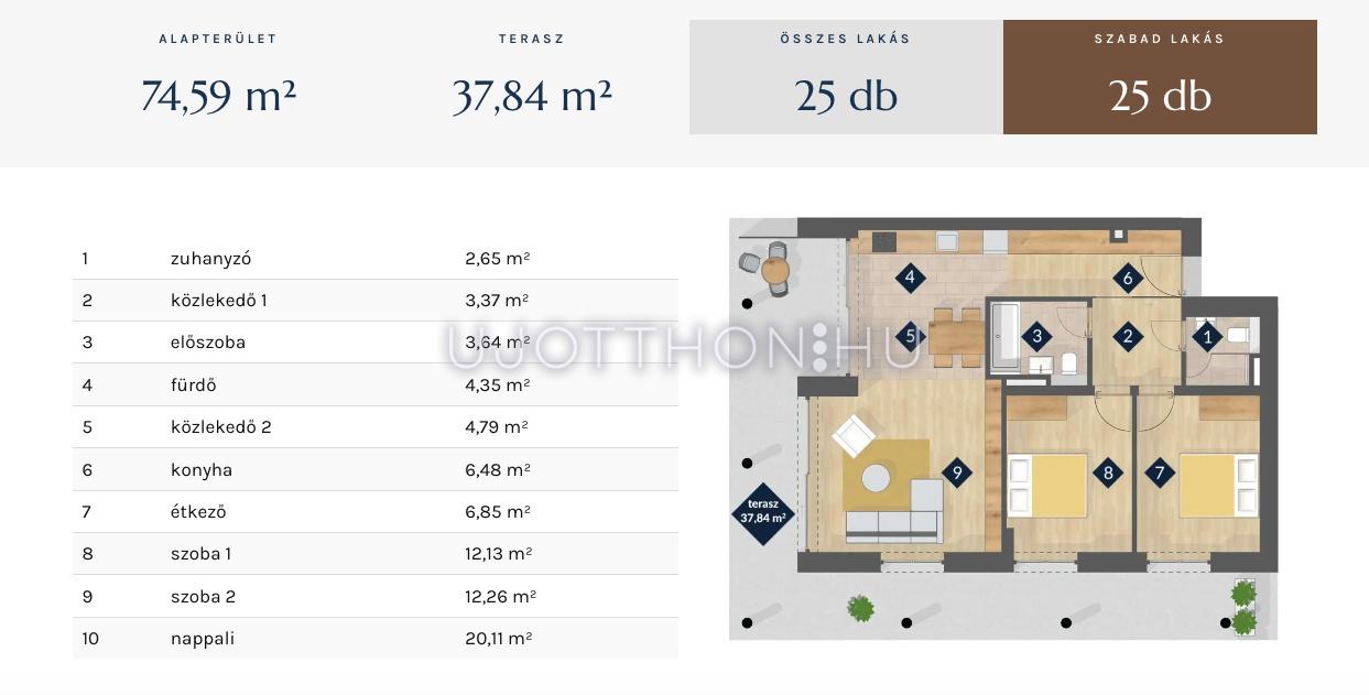 20 db 75 m2 lakás 38 m2 terasszal 1.750.000 FT bevezető áron