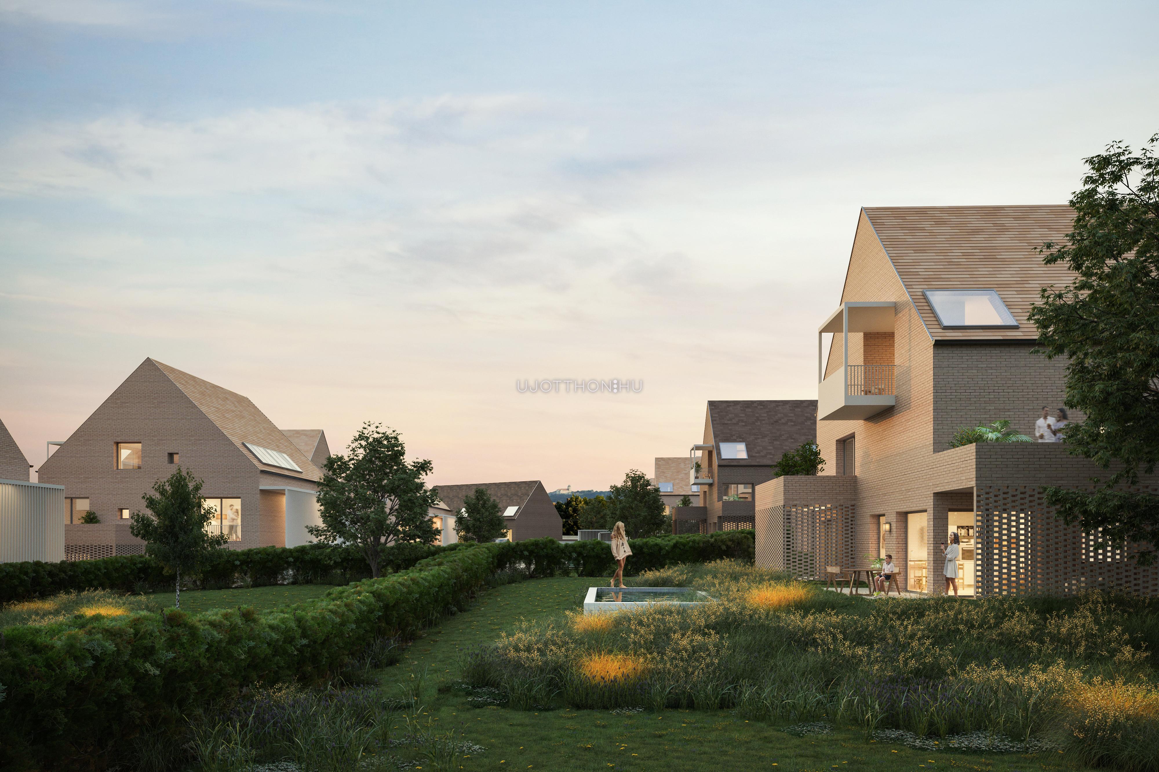 Luxus családi házak több, mint 300m2 lakóterülettel, panorámás tetőtéri terasszal, 4 beállós mélygarázzsal, biciklitárolóval, nagy kerttel és minden igényt kielégítő felszereltséggel.