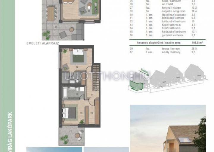 56 és 170 m2 közötti lakások, saját kertrésszel vagy panorámás tetőtéri terasszal, teremgarázs beállóval, vagy saját garázzsal.