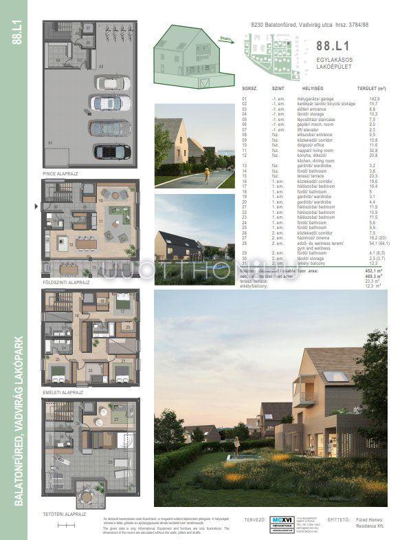 6 szobás 469 m2-es Családi ház Vadvirág Villapark - Balatonfüred, Vadvirág utca