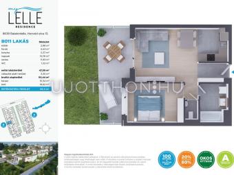 Legyen saját apartmanja a Balaton-parton, akár már 40 millió forinttól! Az újépítésű MyLelle Residence Balatonlelle szívében a Honvéd utcában, szinte a Balaton partján, mindössze 100 méterre a szabad strandtól kínál „A” energetikai besorolású apartmanokat. Az emberléptékűre tervezett, parkosított lakóparkban kétemeletes épületekben 74 darab lakás érhető el. Az alacsony fenntartást a korszerű építészeti és műszaki technológia és a megújuló energiafelhasználás (napelemek és hőszivattyús rendszer) biztosítja, így állandó ottlakásra vagy nyaralónak, de kiadásra is ideális lakásokat kínálunk – egy- és kéthálószobás kivitelben, eltérő méretű loggiával vagy terasszal, földszinti lakások esetében kertkapcsolattal. A lakóparktól néhány perc sétával elérhető a központ és a vasútállomás is.