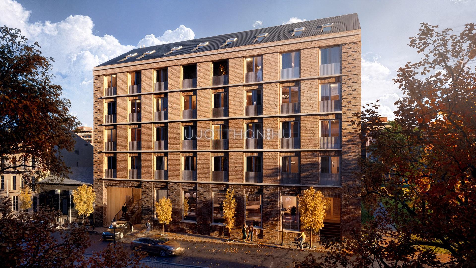 A csendes, fás utcában álló épület tökéletes harmóniát teremt a városi pezsgés és a nyugodt, otthonos légkör között, ahol a város inspirációja és az otthon békéje egyensúlyban él. A homlokzat meleg, természetes árnyalatai és a letisztult geometria modern, mégis időtálló megjelenést adnak az épületnek. A nagy üvegfelületek és arányos formák a fényt és tágasságot hangsúlyozzák, miközben az épület harmonikusan illeszkedik a kerület építészeti örökségéhez. Minden részlet — az anyagválasztástól a kivitelezés precizitásáig — a tartósságot, kényelmet és esztétikumot szolgálja.