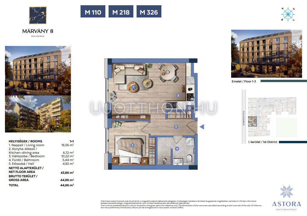 2 szobás 45 m2-es Lakás MÁRVÁNY 8 Residence - Budapest I. kerület, Krisztinaváros, Márvány utca 8