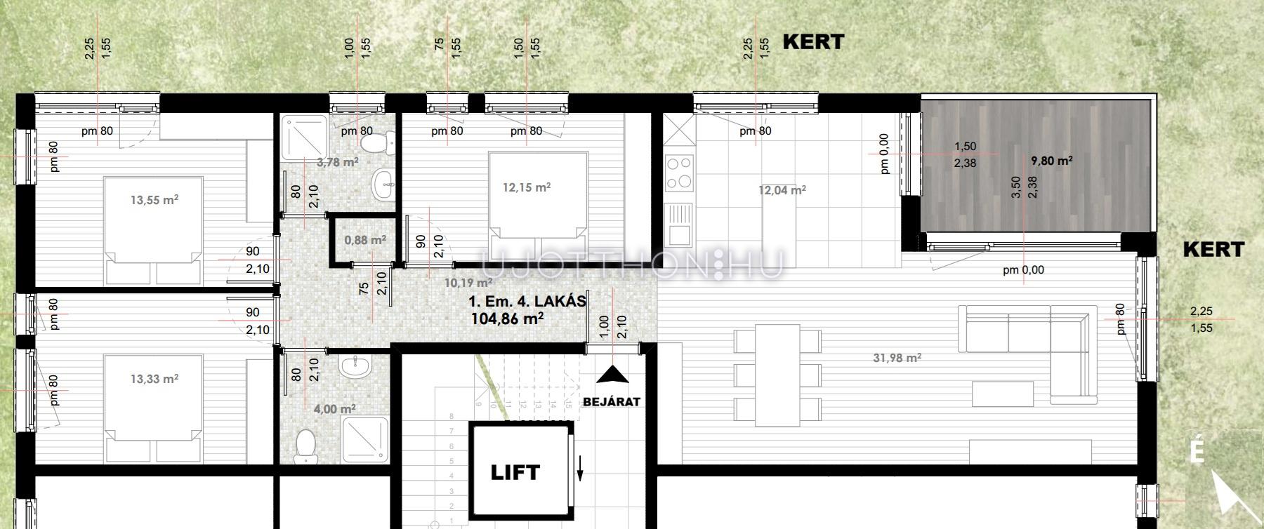 Terasz méret: 9.80 m2
