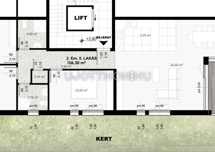 Az ingatlan főfalak által behatárolt területe jelen pillanatban még a leendő vásárlói igényeknek megfelelően alakítható ki: válaszfalak elhelyezése, szobaszám, szobák mérete….stb.