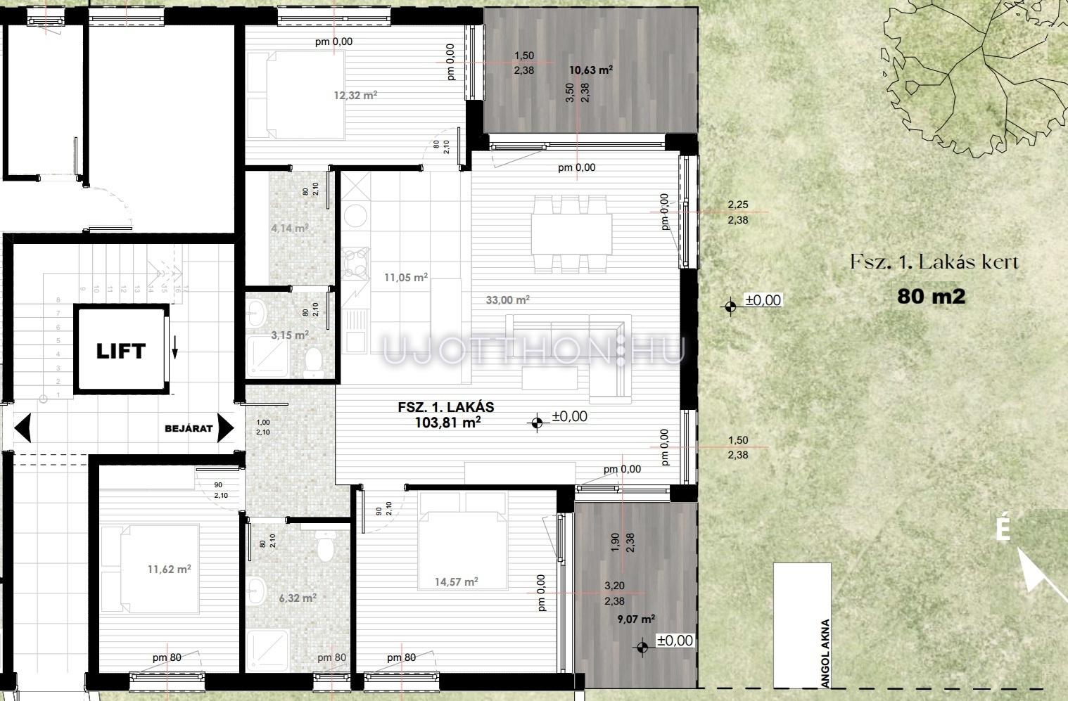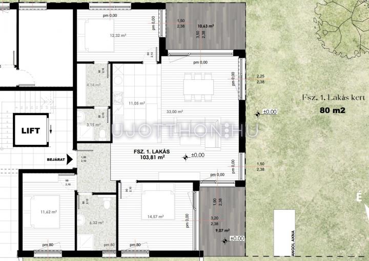 II. Kerület TÖRÖKVÉSZ körzetének MELLÉKUTCÁJÁBAN, ENYHE LEJTÉSŰ téglalap alakú, 1323 m2 TELKEN épülő, 8 LAKÁSOS LIFTES TÁRSASHÁZ FÖLDSZINTJÉN kínálunk eladásra, egy DK-i TÁJOLÁSÚ, SAJÁT KERTRE NÉZŐ, 113,8 m2-es (20 m2 terasz 1/2 méretének a beszámítása mellett. A terasz nélküli főfalak által behatárolt alapterület 103,8 m2), 4 SZOBÁS, 2 FÜRDŐSZOBÁS, 2 DB TEREMGARÁZZSAL (+15 Mft/db), 3,5 m2 tárolóval (+6,3 Mft) és 80 m2 SAJÁT KIZÁRÓLAGOS KERTTEL rendelkező újépítésű lakást.