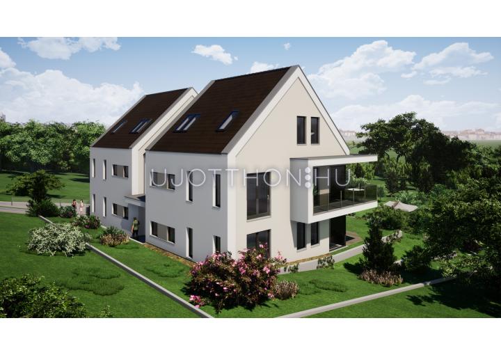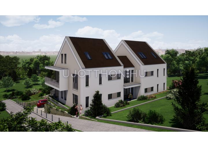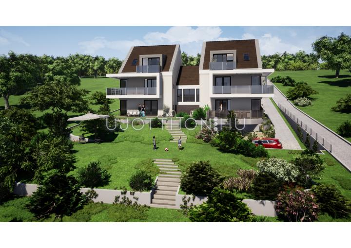 Testvérhegyen 2 földszinti, 2 belső kétszintes, liftes lakások épülnek, teremgarázzsal, tárolóval, 1400nm-es telken!