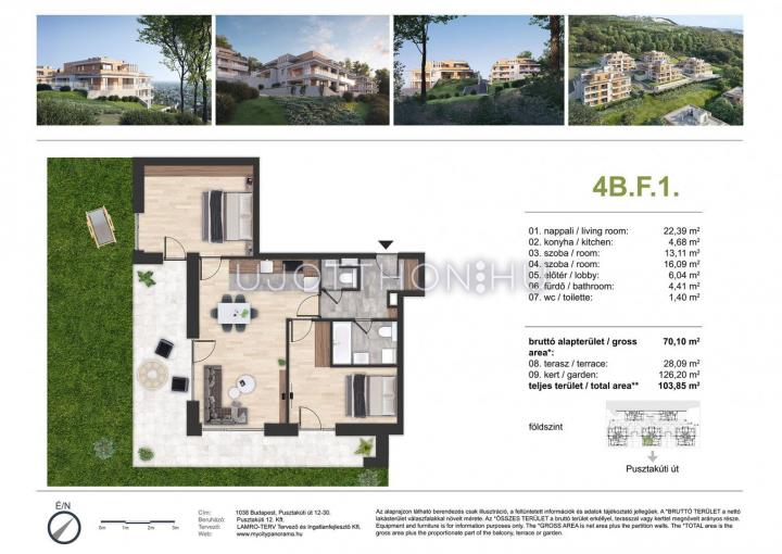Eladó nappali + 2 szobás, 70nm-es lakás 28nm-es terasszal és 126 nm-es saját kerttel a MyCity Panoráma lakóparkban. A modern, 57 lakásos lakópark a 3. kerület egyik legszebb részén, a Csillaghegyi Strandfürdő mellett épül.