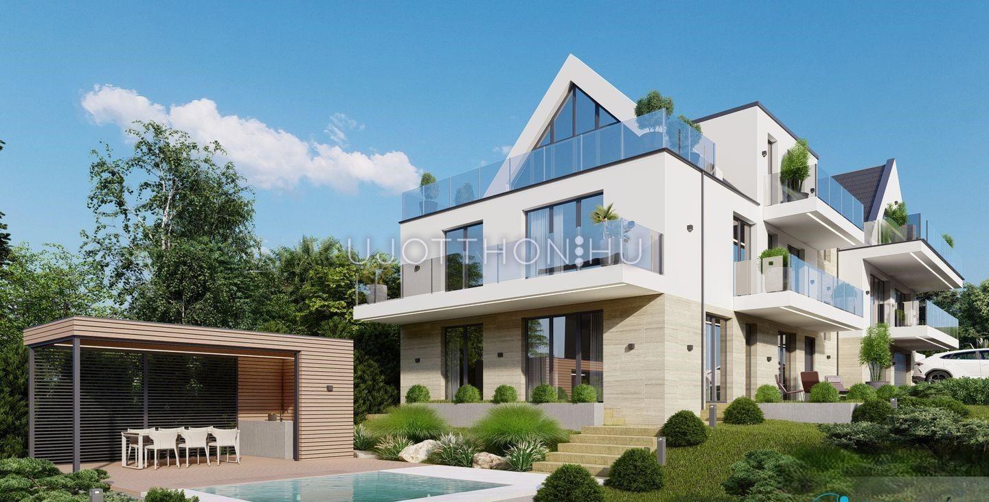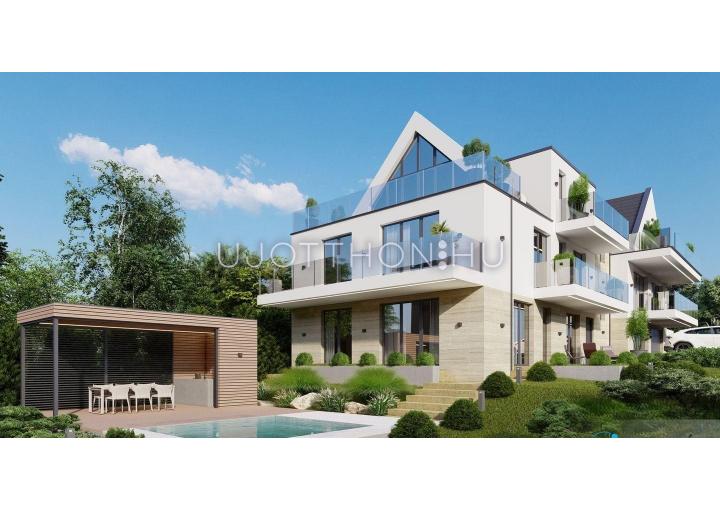 Ürömhegy déli lejtőjén 4 lakásos társasházban, nappali + 3 hálós, gardróbos, 2 fürdőszobás, nagy teraszos, saját kerttel, garázzsal, 2026. év végi átadással lakások leköthetőek!
