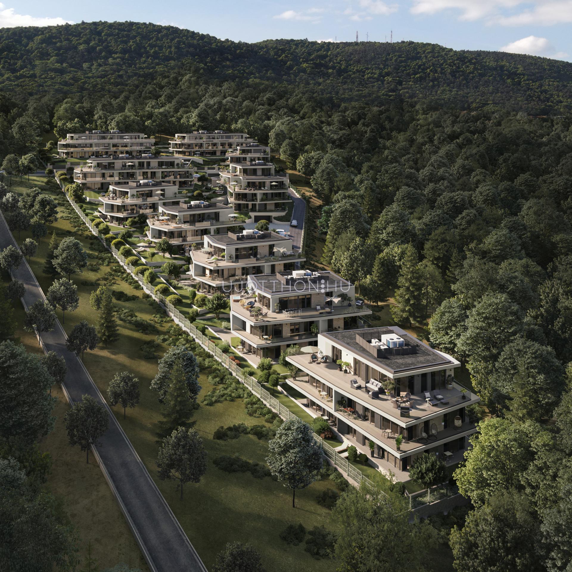 - az erdő szomszédságában található - az erdő melletti legfelső telkeken indul a fejlesztés, a teraszról szinte megérinthetjük a fák lombjait!