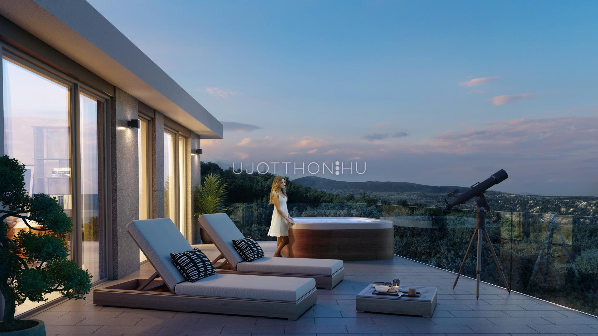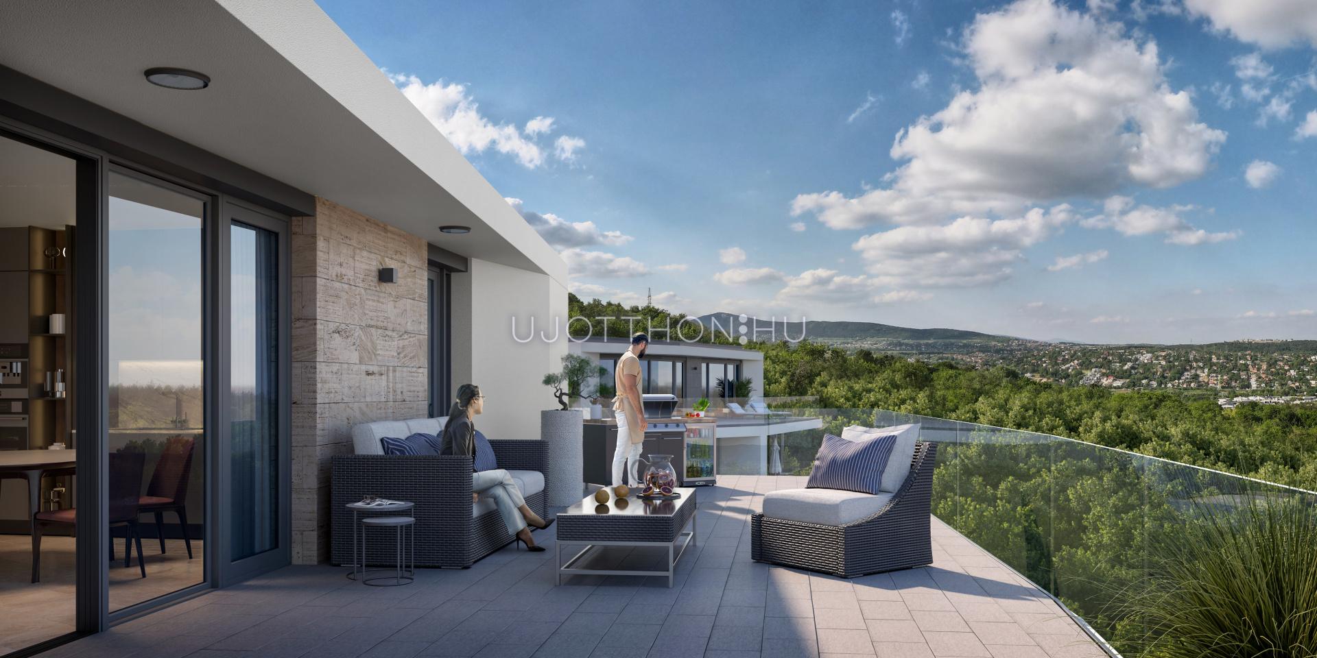 - budai hegyekre és zöldre néző kilátás, a privát teraszokról, a természetközeliség mellé a szemet nyugtató zöld látvány elképesztően feltöltő hatású...