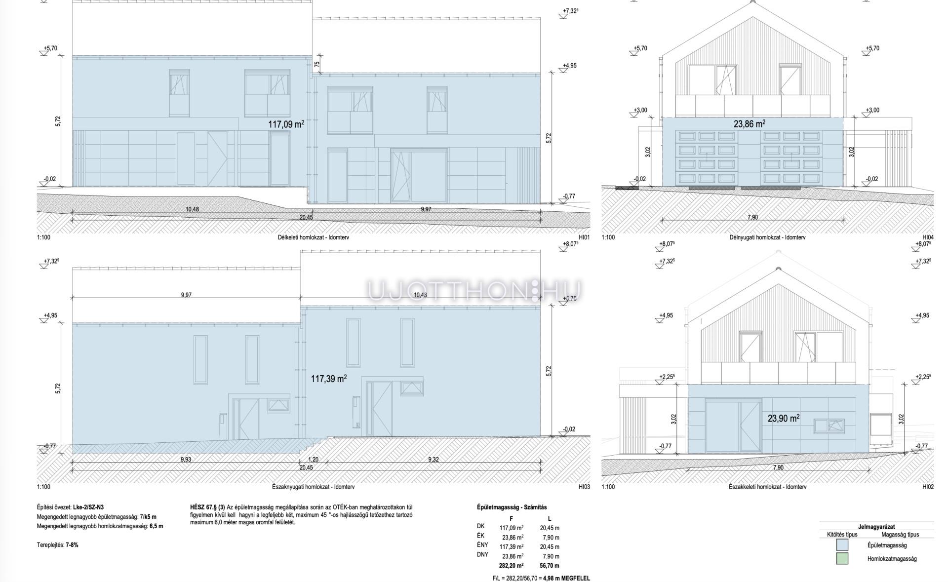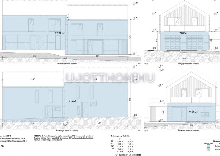 K-A Lakás:120,74 + Erkély/Terasz:32,41m², Szoba: 4db, Fürdőszoba: 2db, Felszíni parkoló: 2db, Telek: 405,5m² - 216,0 Mft.