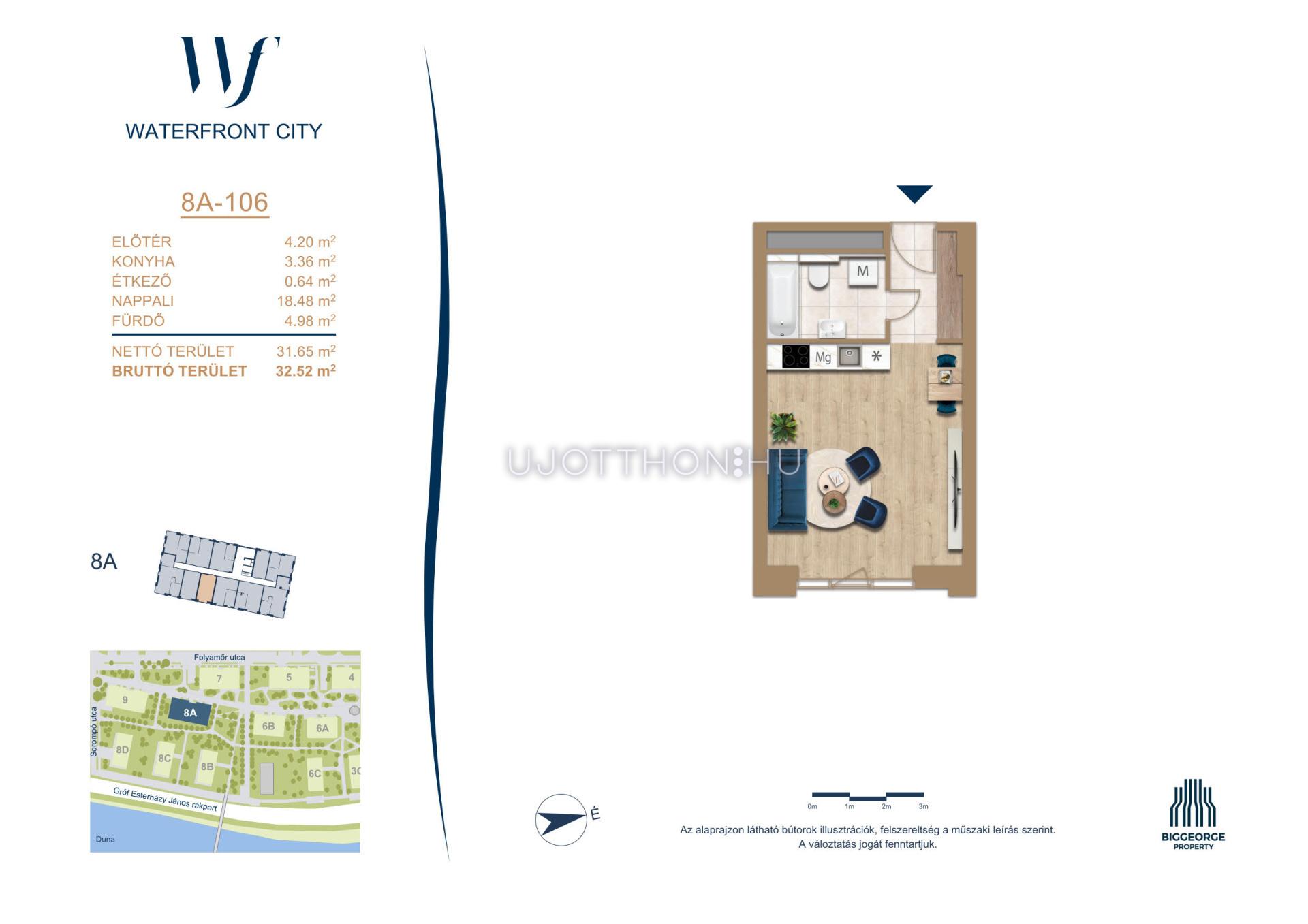 A Waterfront City egy új, modern városnegyed a 3. kerületben, ahol a természet közelsége és a városi kényelem tökéletes egyensúlyban van. A Duna-part közvetlen szomszédságában elhelyezkedő fejlesztés különleges atmoszférát kínál: a sétányt új épületek határolják, üzletekkel, kávézókkal és szolgáltatásokkal, amelyek élhető közösségi teret teremtenek.