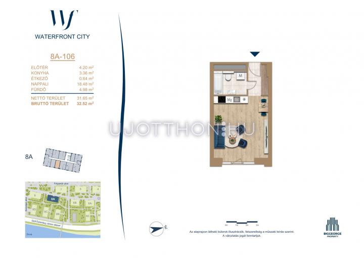 1 szobás 32 m2-es Lakás Waterfront City 6 - Budapest III. kerület