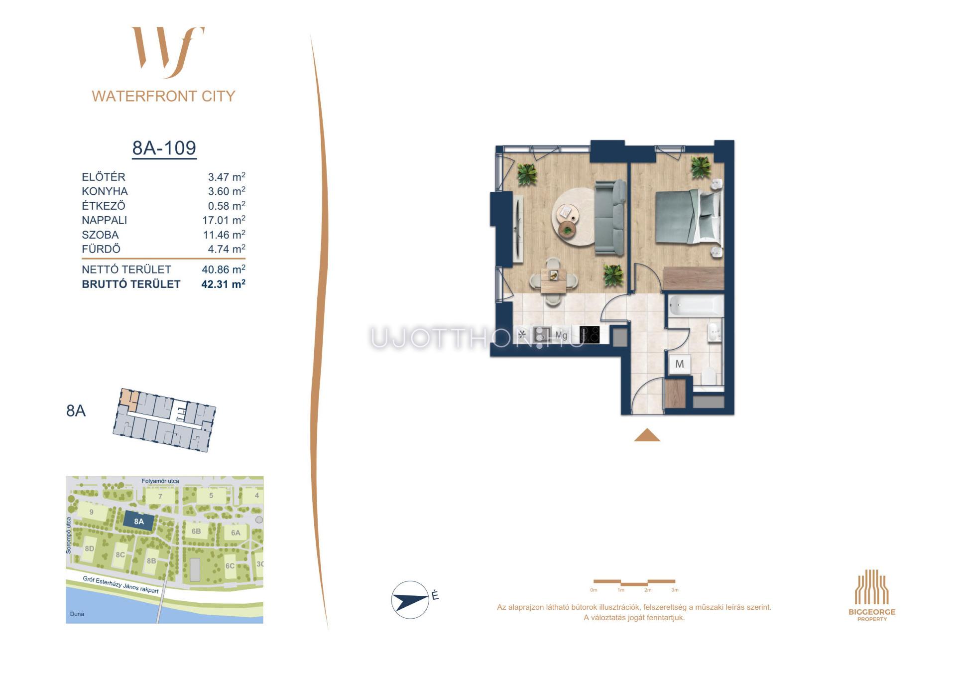 2 szobás 41 m2-es Lakás Waterfront City 6 - Budapest III. kerület