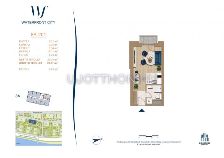 1 szobás 27 m2-es Lakás Waterfront City 6 - Budapest III. kerület