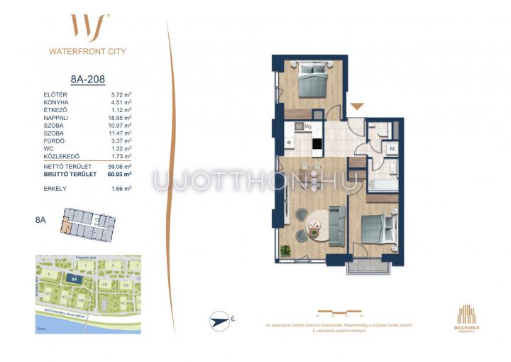 3 szobás 59 m2-es Lakás Waterfront City 6 - Budapest III. kerület