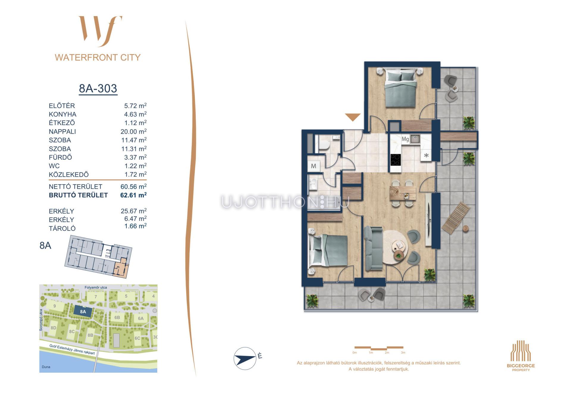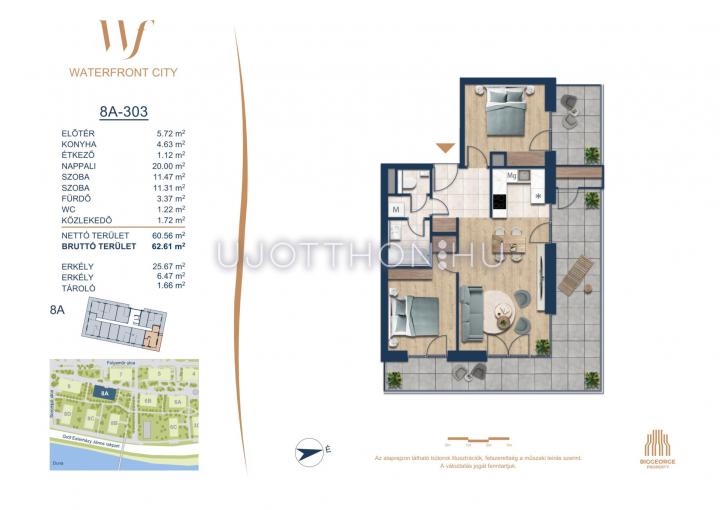 3 szobás 61 m2-es Lakás Waterfront City 6 - Budapest III. kerület