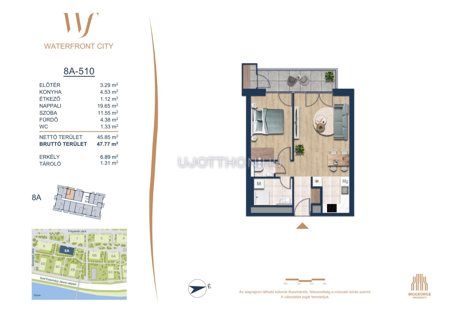 2 szobás 46 m2-es Lakás Waterfront City 6 - Budapest III. kerület