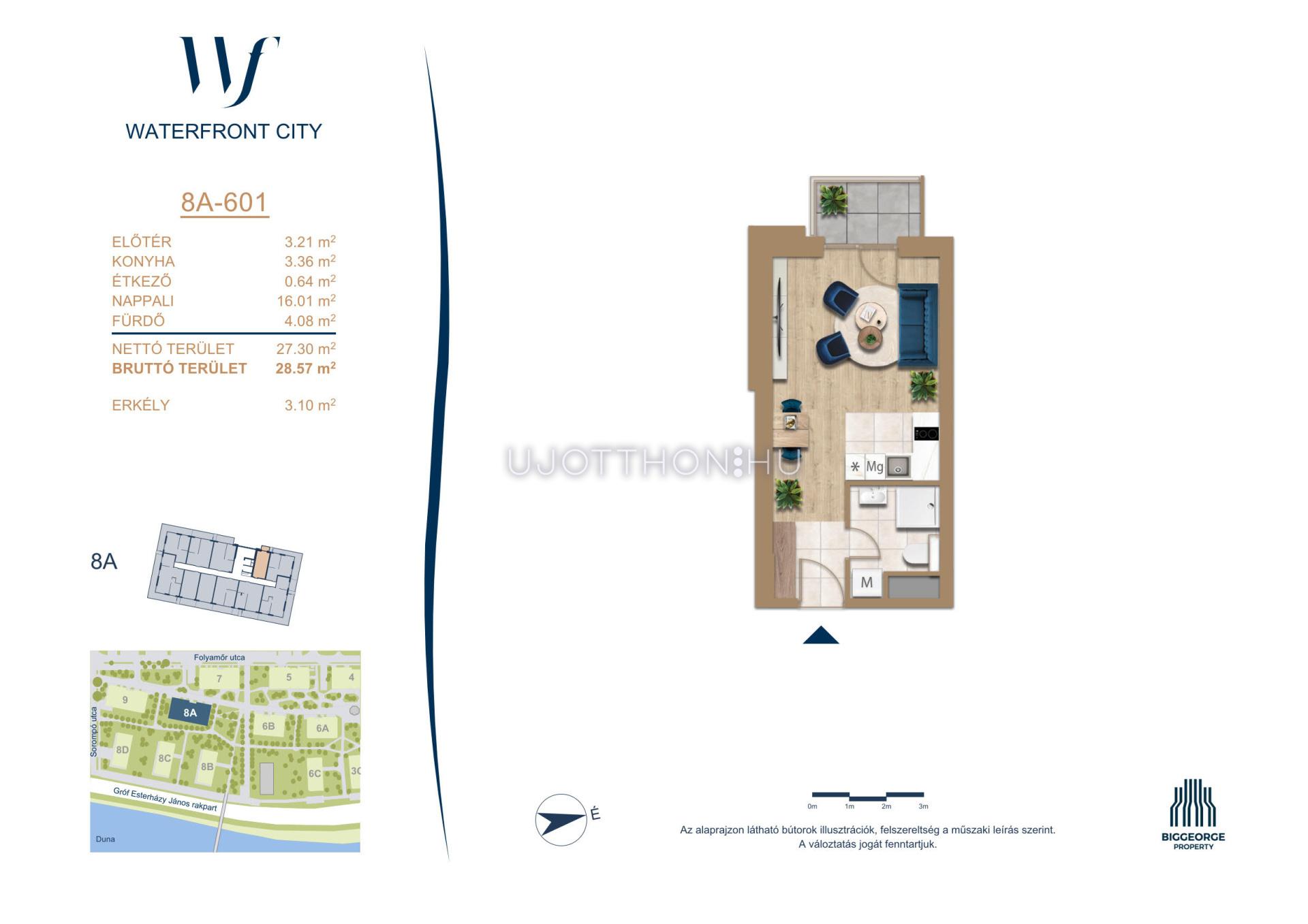 A Waterfront City egy új, modern városnegyed a 3. kerületben, ahol a természet közelsége és a városi kényelem tökéletes egyensúlyban van. A Duna-part közvetlen szomszédságában elhelyezkedő fejlesztés különleges atmoszférát kínál: a sétányt új épületek határolják, üzletekkel, kávézókkal és szolgáltatásokkal, amelyek élhető közösségi teret teremtenek.