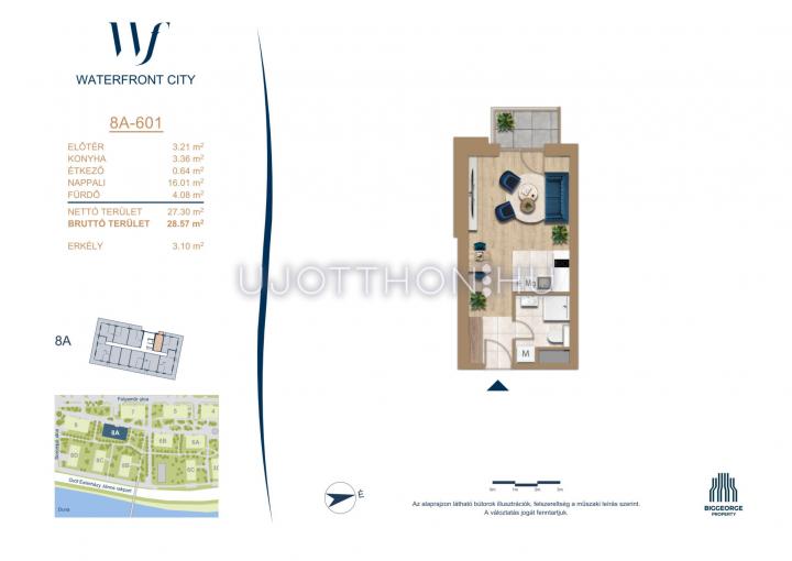 1 szobás 27 m2-es Lakás Waterfront City 6 - Budapest III. kerület