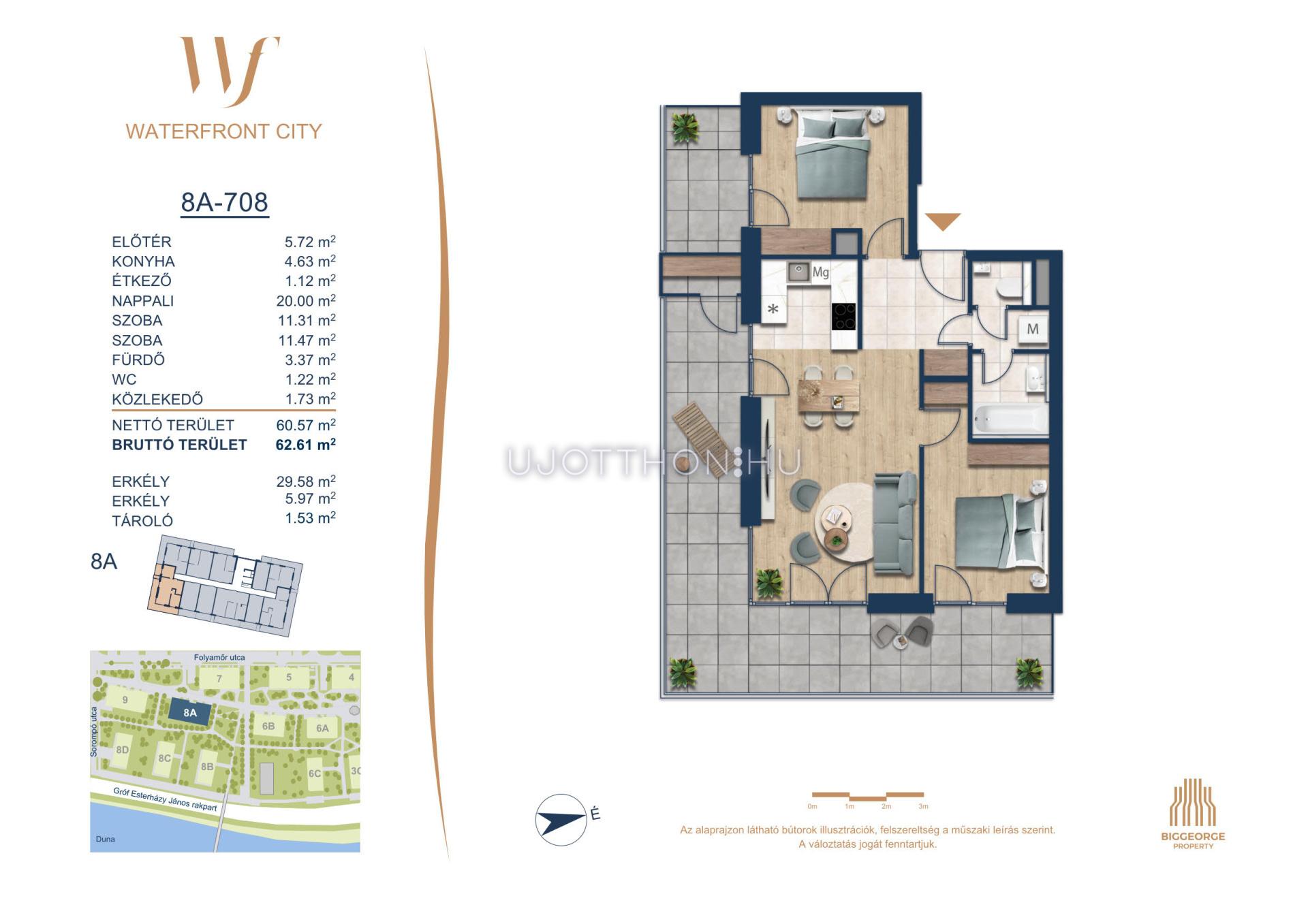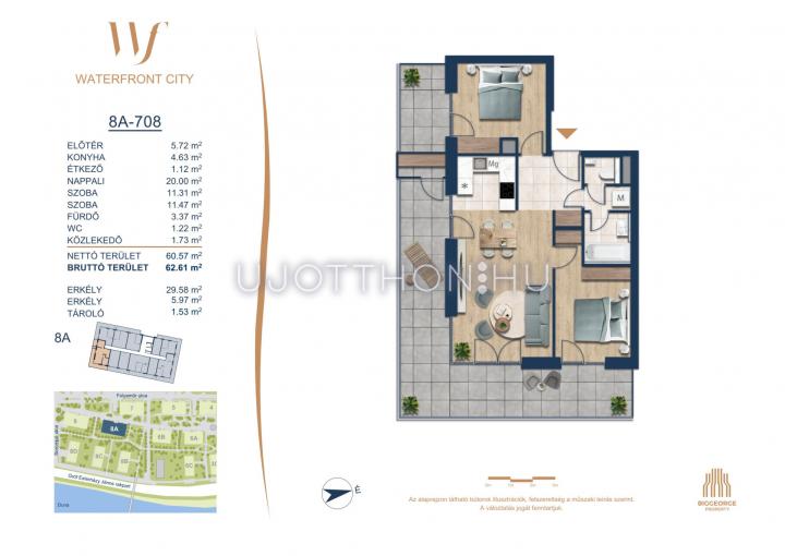3 szobás 61 m2-es Lakás Waterfront City 6 - Budapest III. kerület