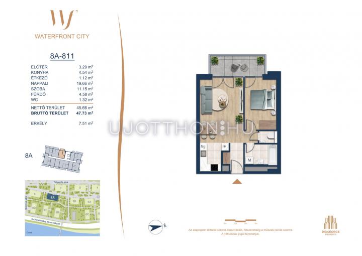 2 szobás 46 m2-es Lakás Waterfront City 6 - Budapest III. kerület
