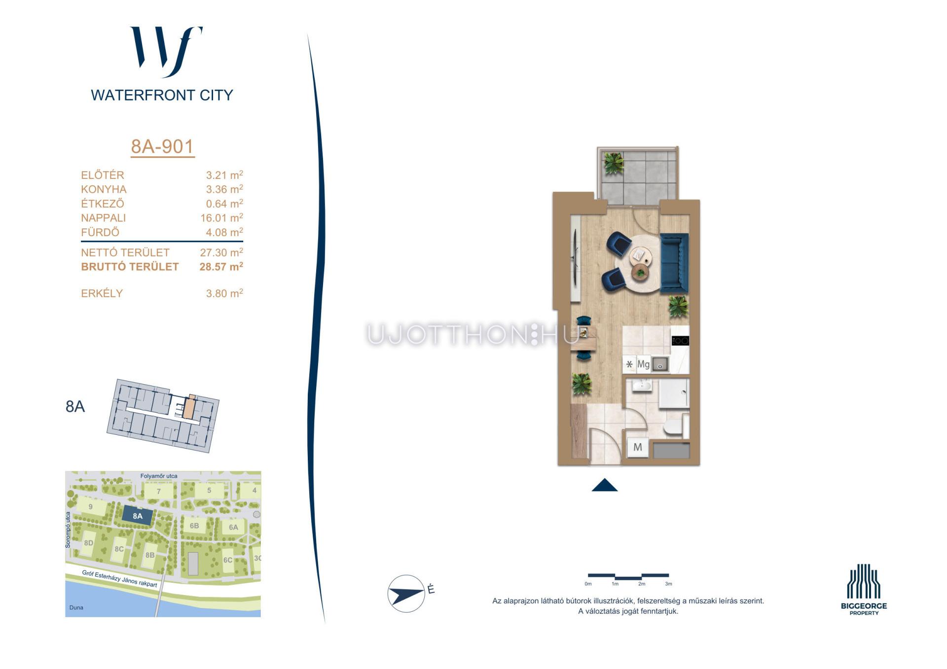 A Waterfront City egy új, modern városnegyed a 3. kerületben, ahol a természet közelsége és a városi kényelem tökéletes egyensúlyban van. A Duna-part közvetlen szomszédságában elhelyezkedő fejlesztés különleges atmoszférát kínál: a sétányt új épületek határolják, üzletekkel, kávézókkal és szolgáltatásokkal, amelyek élhető közösségi teret teremtenek.