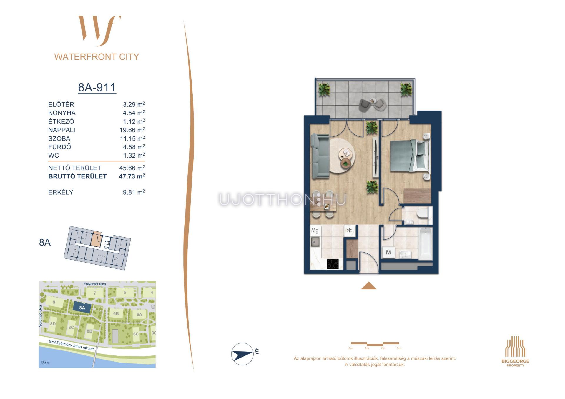 2 szobás 46 m2-es Lakás Waterfront City 6 - Budapest III. kerület