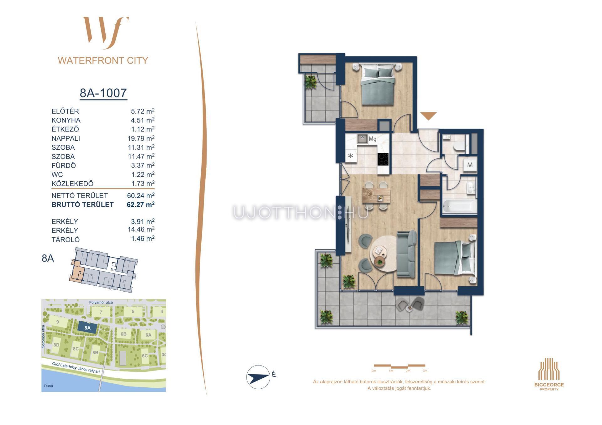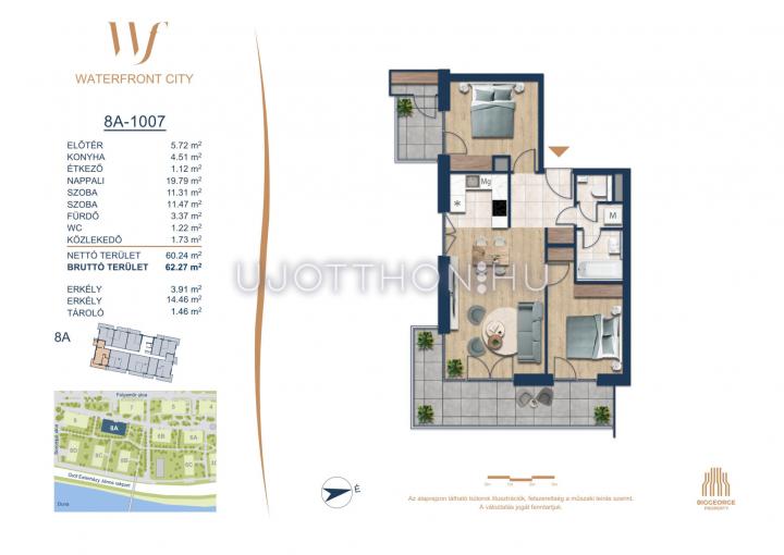 3 szobás 60 m2-es Lakás Waterfront City 6 - Budapest III. kerület