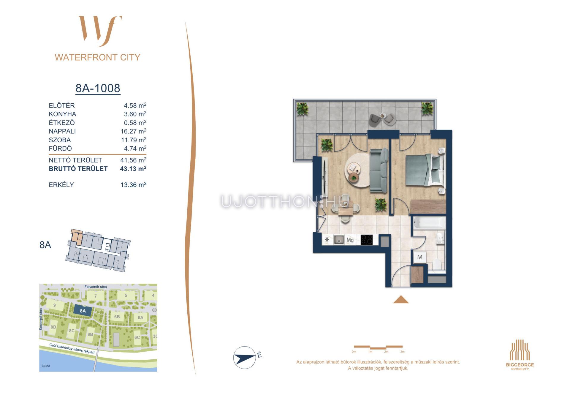 A Waterfront City egy új, modern városnegyed a 3. kerületben, ahol a természet közelsége és a városi kényelem tökéletes egyensúlyban van. A Duna-part közvetlen szomszédságában elhelyezkedő fejlesztés különleges atmoszférát kínál: a sétányt új épületek határolják, üzletekkel, kávézókkal és szolgáltatásokkal, amelyek élhető közösségi teret teremtenek.