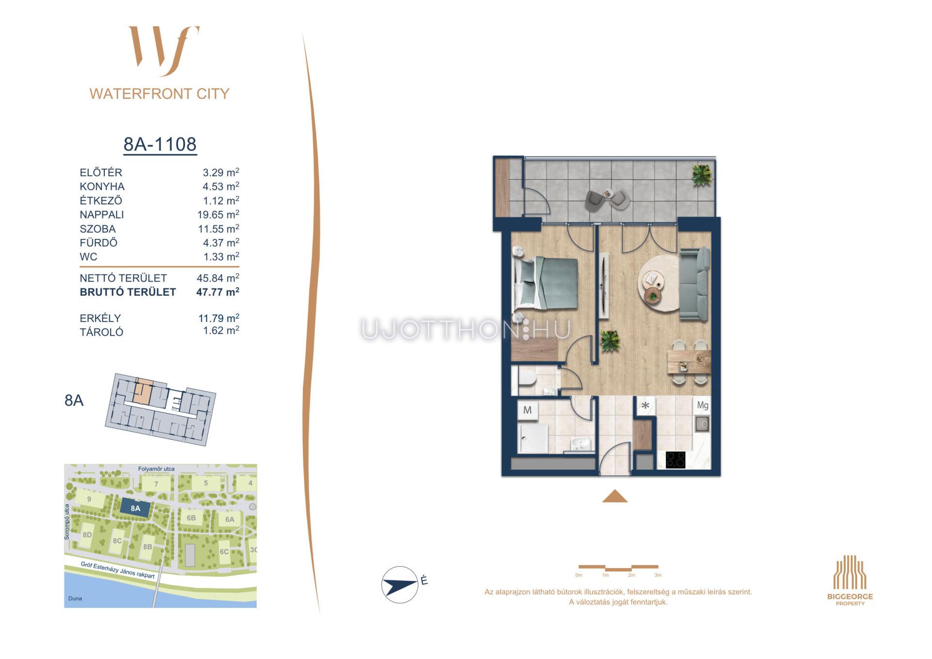 A Waterfront City egy új, modern városnegyed a 3. kerületben, ahol a természet közelsége és a városi kényelem tökéletes egyensúlyban van. A Duna-part közvetlen szomszédságában elhelyezkedő fejlesztés különleges atmoszférát kínál: a sétányt új épületek határolják, üzletekkel, kávézókkal és szolgáltatásokkal, amelyek élhető közösségi teret teremtenek.