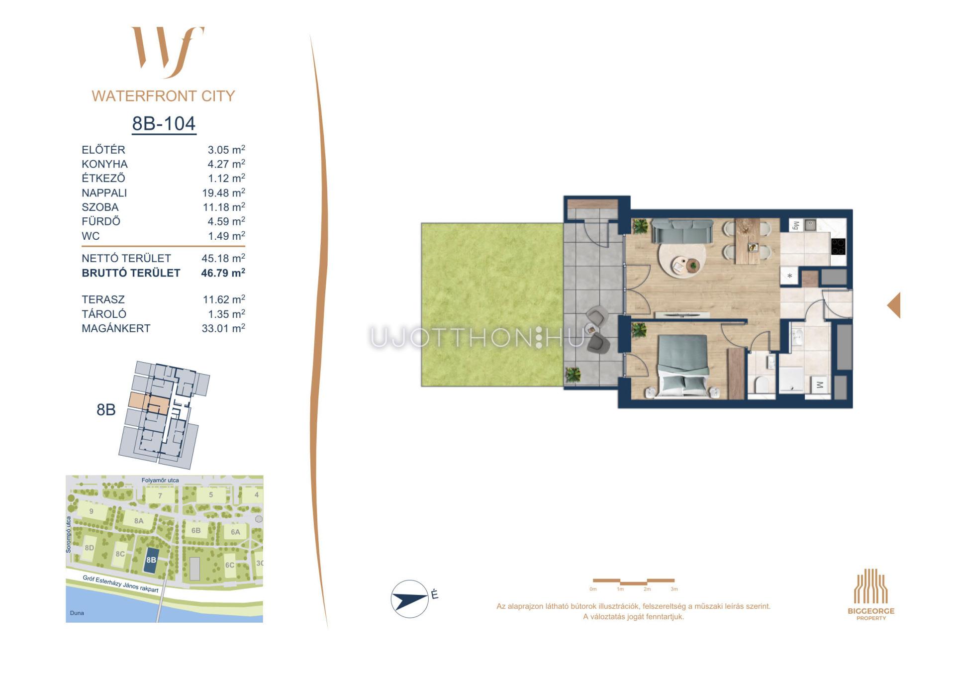 2 szobás 45 m2-es Lakás Waterfront City 6 - Budapest III. kerület