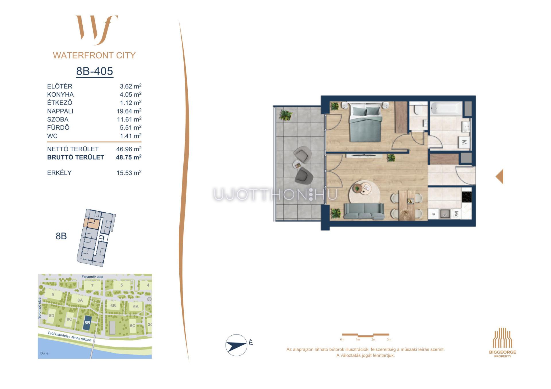 A Waterfront City egy új, modern városnegyed a 3. kerületben, ahol a természet közelsége és a városi kényelem tökéletes egyensúlyban van. A Duna-part közvetlen szomszédságában elhelyezkedő fejlesztés különleges atmoszférát kínál: a sétányt új épületek határolják, üzletekkel, kávézókkal és szolgáltatásokkal, amelyek élhető közösségi teret teremtenek.