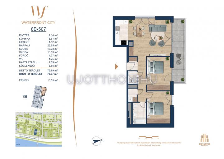 3 szobás 77 m2-es Lakás Waterfront City 6 - Budapest III. kerület