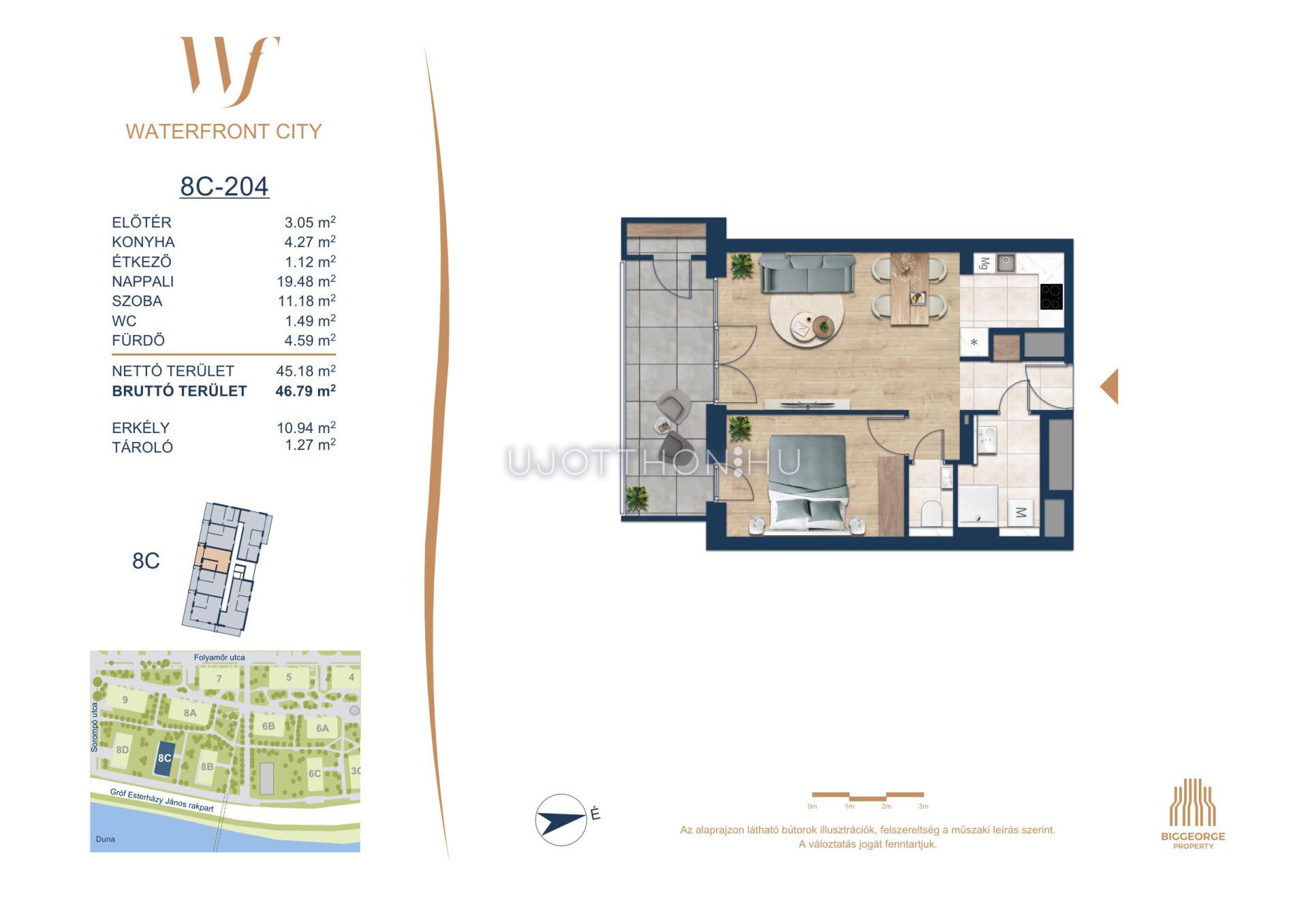 A Waterfront City egy új, modern városnegyed a 3. kerületben, ahol a természet közelsége és a városi kényelem tökéletes egyensúlyban van. A Duna-part közvetlen szomszédságában elhelyezkedő fejlesztés különleges atmoszférát kínál: a sétányt új épületek határolják, üzletekkel, kávézókkal és szolgáltatásokkal, amelyek élhető közösségi teret teremtenek.