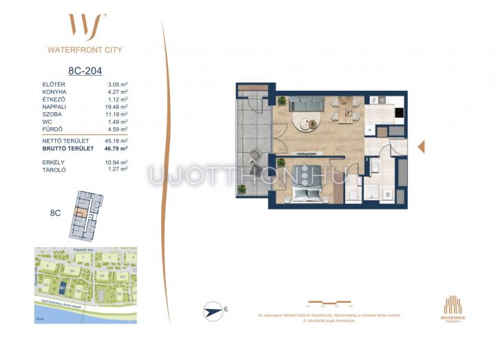 2 szobás 45 m2-es Lakás Waterfront City 6 - Budapest III. kerület
