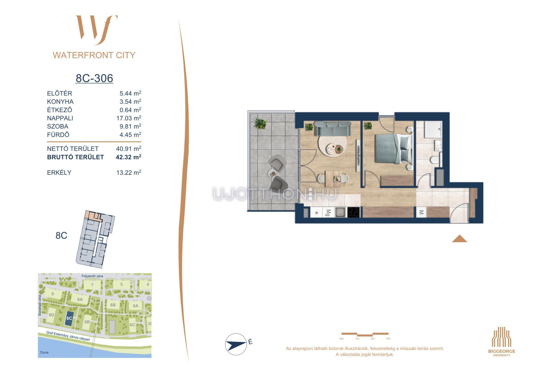 2 szobás 41 m2-es Lakás Waterfront City 6 - Budapest III. kerület