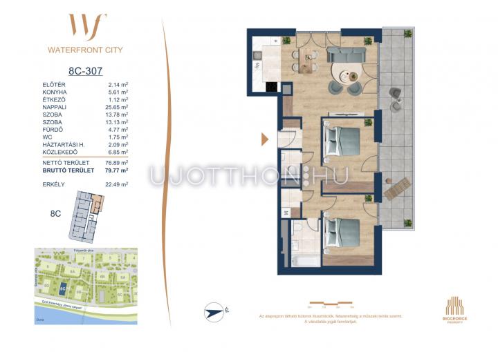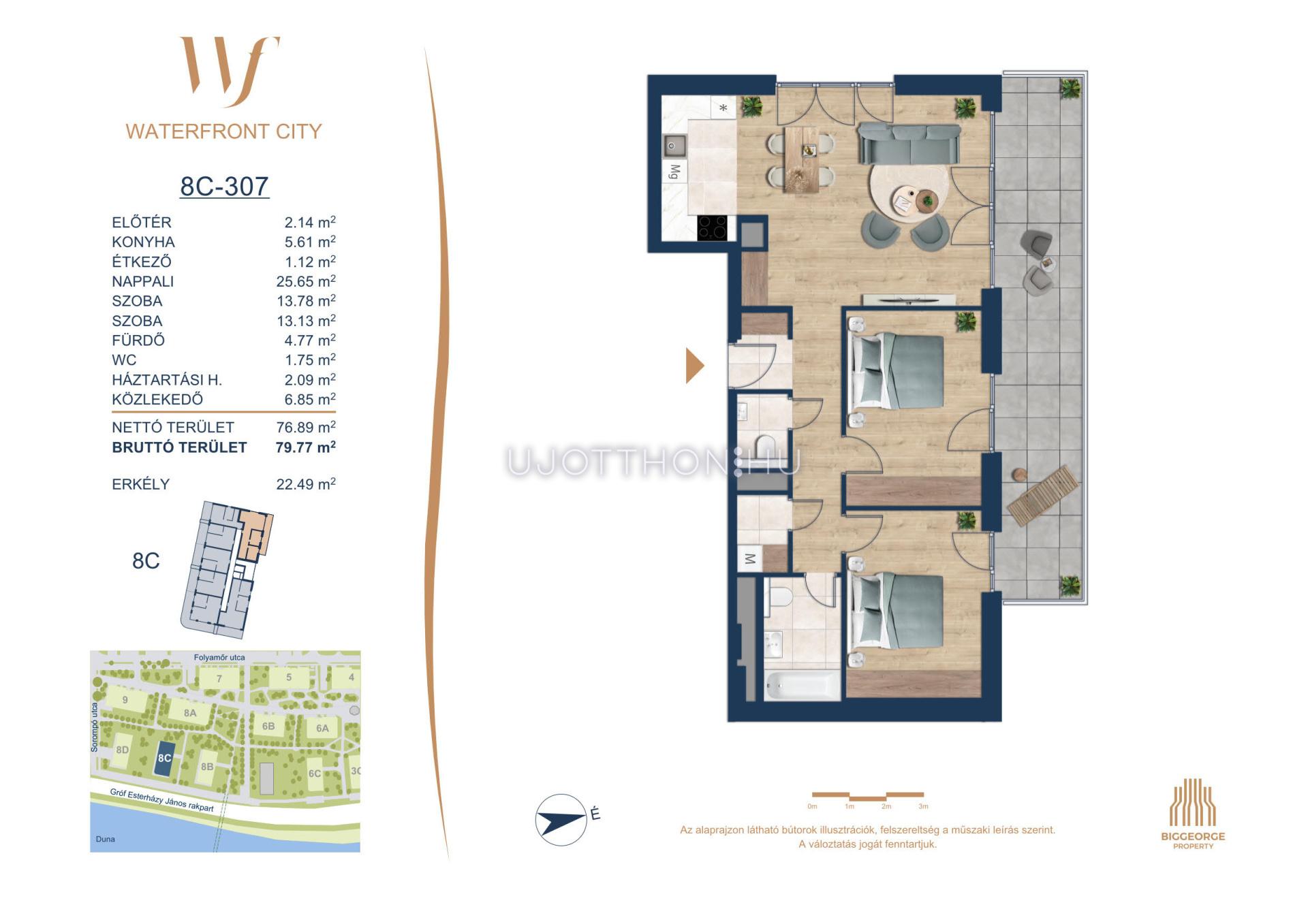 3 szobás 77 m2-es Lakás Waterfront City 6 - Budapest III. kerület