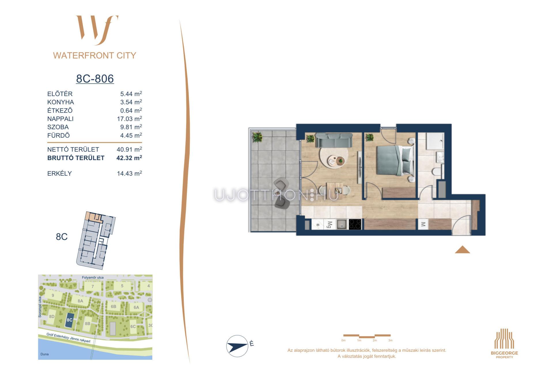 2 szobás 41 m2-es Lakás Waterfront City 6 - Budapest III. kerület