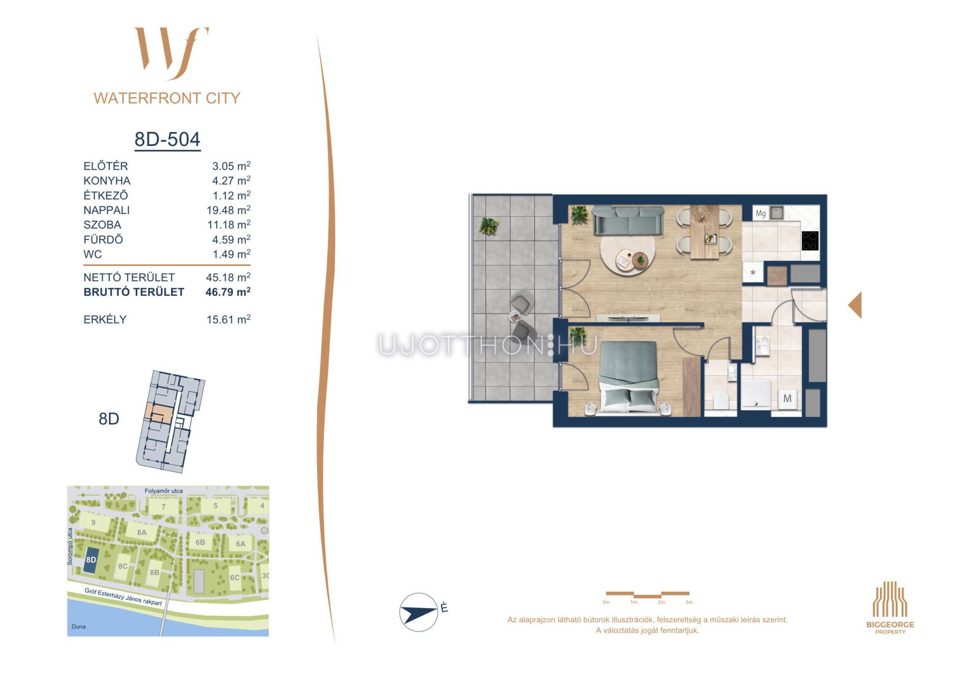 2 szobás 45 m2-es Lakás Waterfront City 6 - Budapest III. kerület