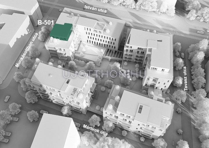 A projekt leírása szerint a telek az István-, Munkásotthon-, Mártírok- és Tavasz utca négyesével körbe ölelt területen helyezkedik el. A társasház -2. szintjén pedig mélygarázs és tároló is rendelkezésre áll a lakók kényelméért.