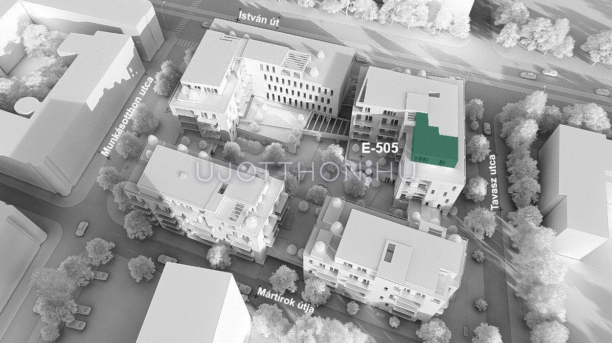 A projekt leírása szerint a telek az István-, Munkásotthon-, Mártírok- és Tavasz utca négyesével körbe ölelt területen helyezkedik el. A társasház -2. szintjén pedig mélygarázs és tároló is rendelkezésre áll a lakók kényelméért.