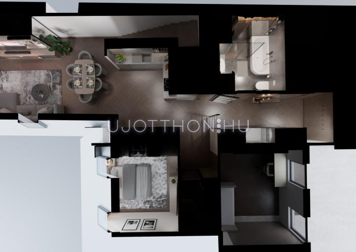 Duplakomfortos infrastruktúrával rendelkező, élhető terekkel hatalmas teraszokkal,